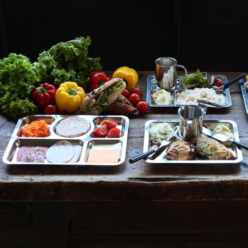 軍の使用しているフードトレイ。そのカッコよさは、機能的かつ効率的で、シンプルなところ。その、飾り気はないが内容の濃いカッコよさを、日常で使いやすいプレートにしました。アウトドアやキャンプでは間違いなくムードメーカーに。パーツトレイとしても重宝します。コンパクトな4区分のタイプA。