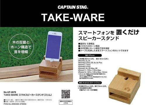 TAKE-WARE スマホスピーカースタンド(スリム) / TAKE-WARE SmartPhone Speaker Stand(Slim)
