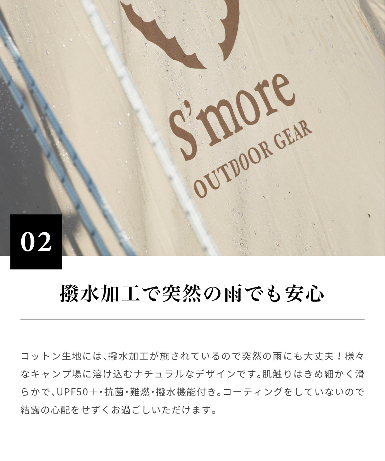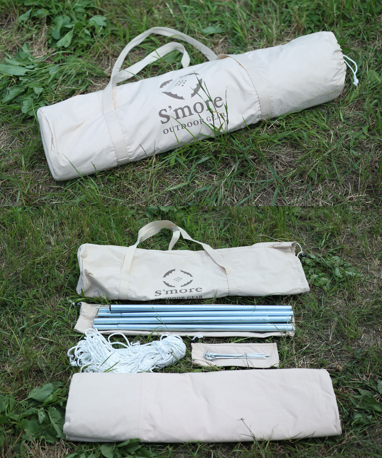 タープテント スモア タープ テント 収納バッグ付き ポリコットン キャンプ テント おしゃれ 撥水 UVカット UPF50+ アウトドア 日除け バーベキュー 通気 吸湿 収納ケース 400×500cm 耐水圧350-500 【撥水 難燃 UPF50+ 抗菌】