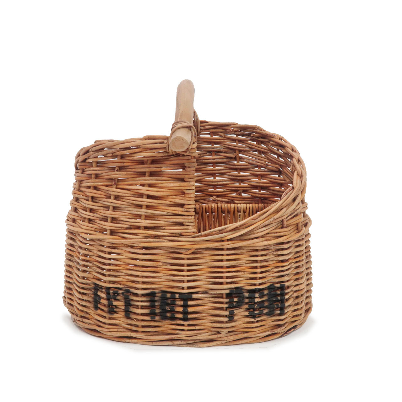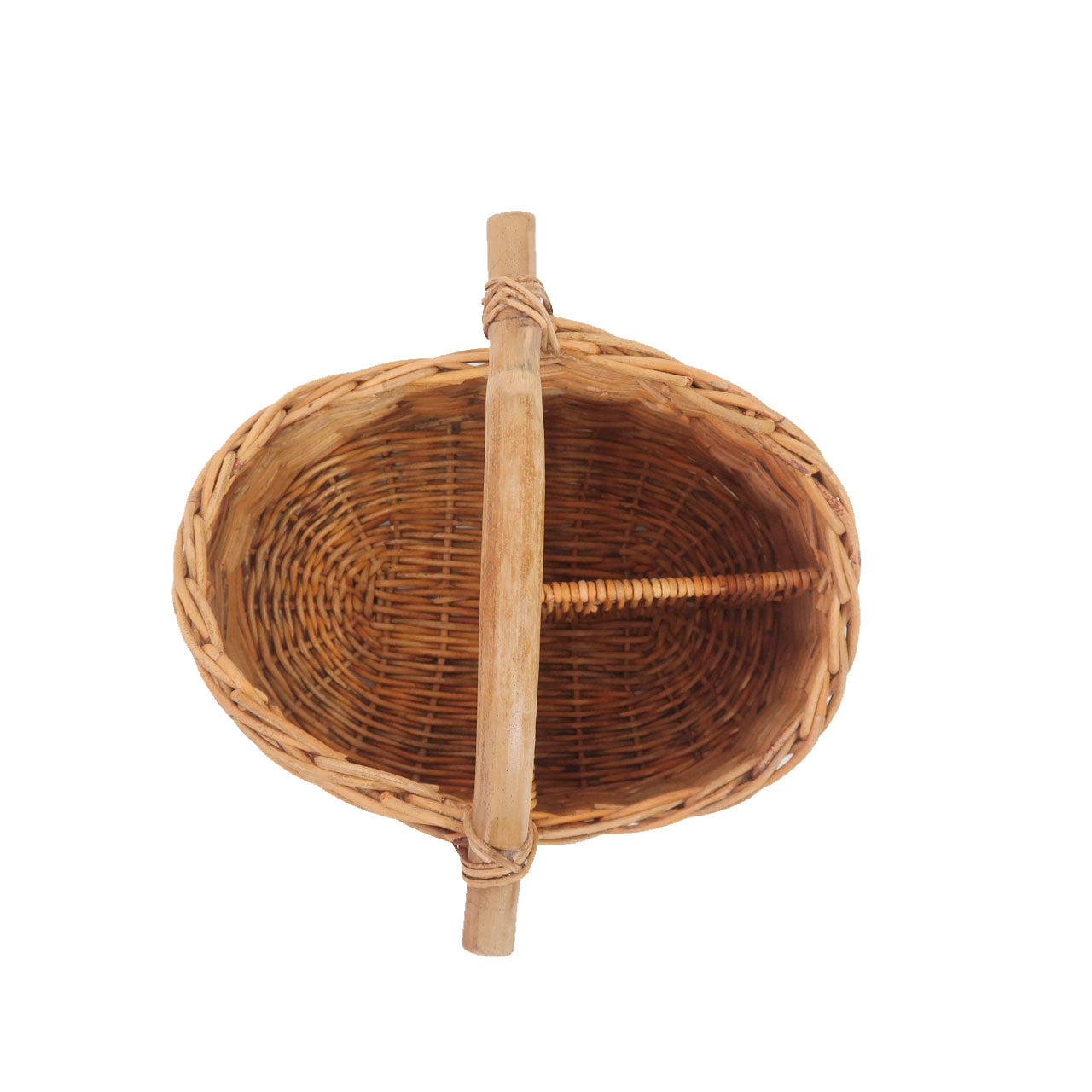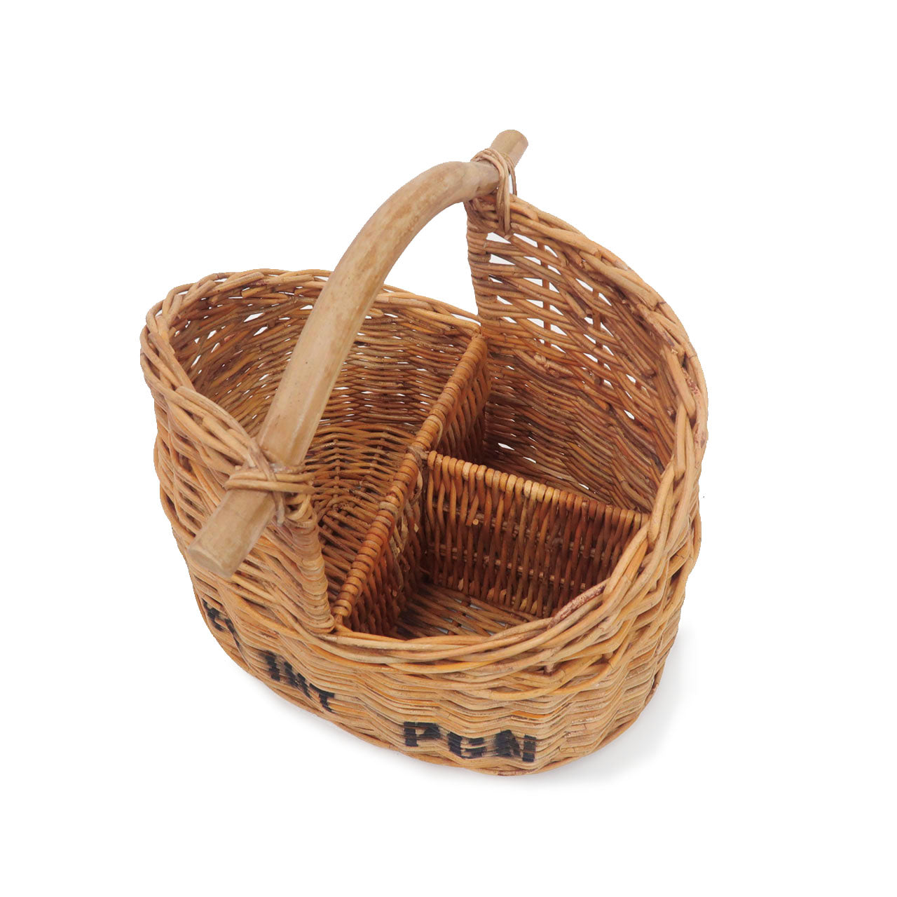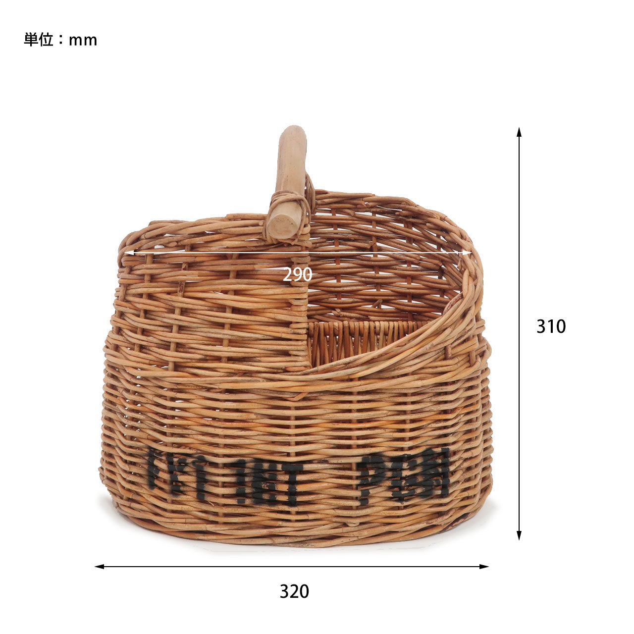 工具や道具を整理しやすい間仕切りを付けたラタン製のハンドルバスケット。