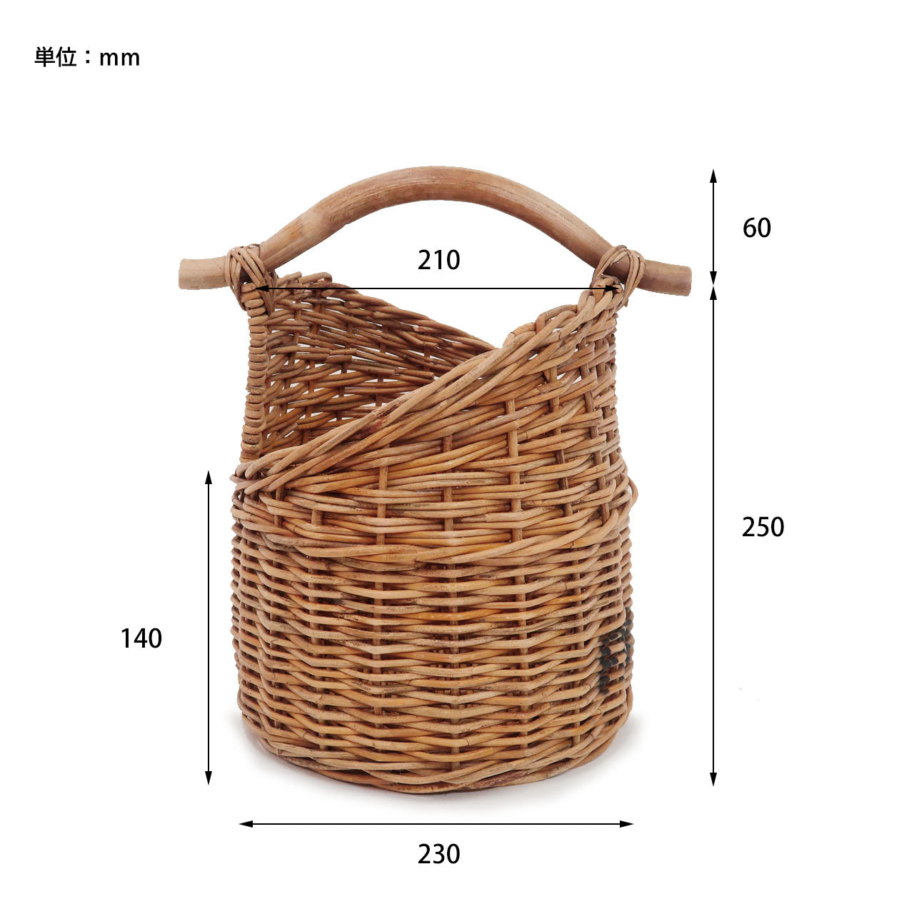 自然の風合い豊かな皮付きラタンで編まれたバスケットです。