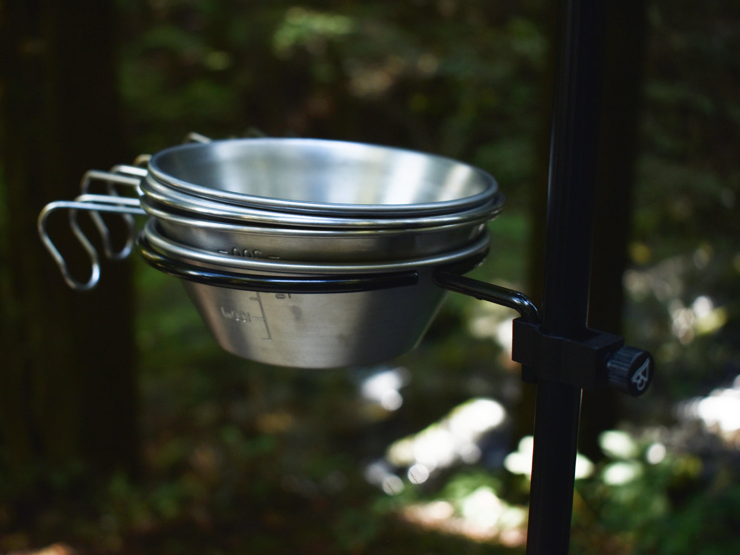 スタンドのポールに取り付けができ、様々なアイテムをハンキングできるようになります。