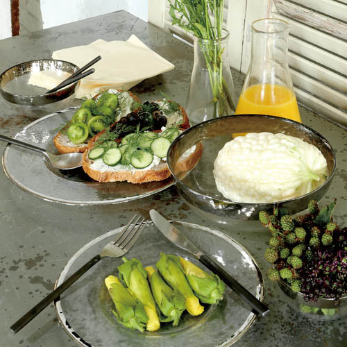 焼き付け加工のハンドルのチャコールが渋い、ステンレス製のカトラリーシリーズ。 スリムなハンドルがスマートな印象をより一層強調しつつも、どっしりとした彼には、美しさとは異なる魅力があります。飾り気が無い、その佇まいが無言で語る格好良さは正に唯一無二です。
