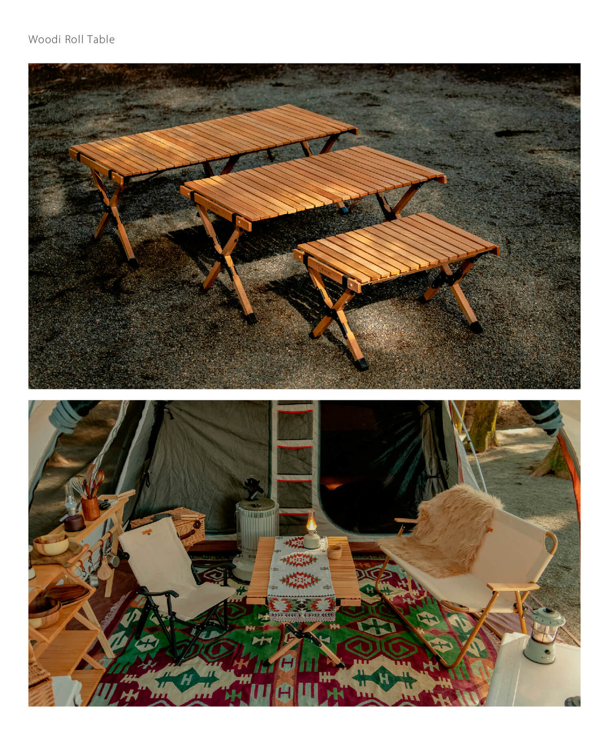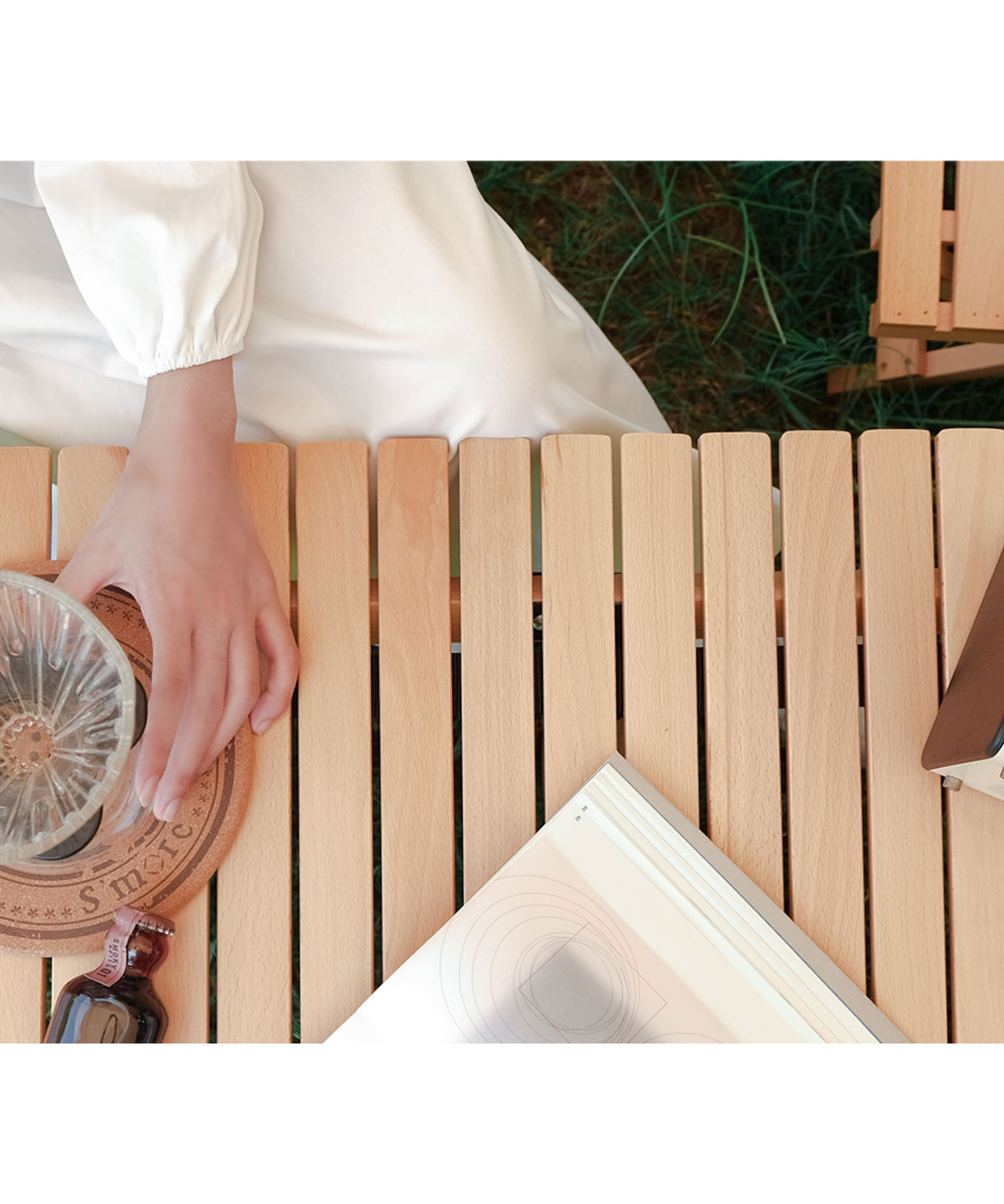 木製だからどんなギアとも合わせやすくおしゃれなキャンプ空間を作れます。