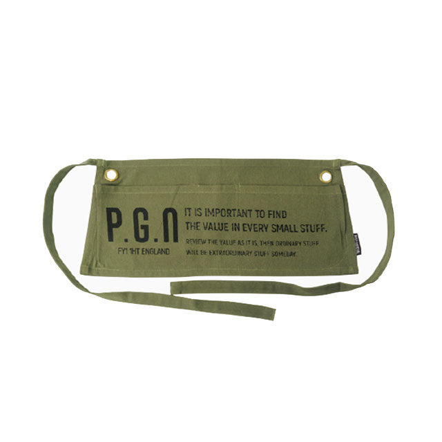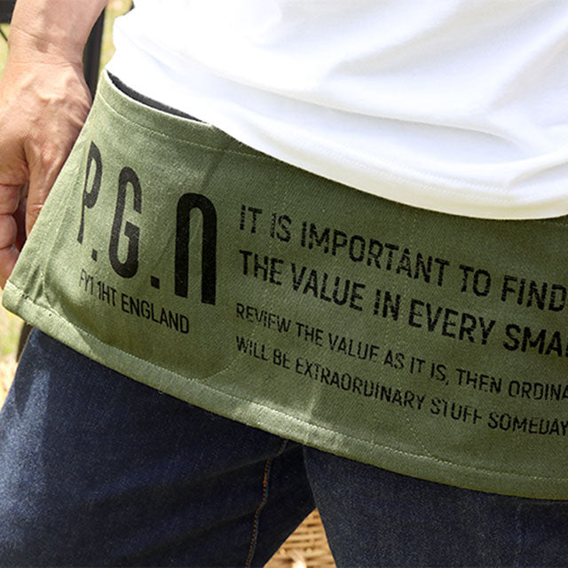 ビンテージの企業広告エプロンをモチーフにした前掛け型のワークエプロン。