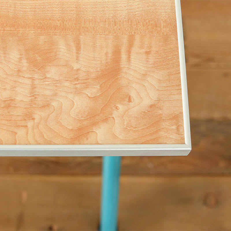 特徴的な形状とカラーリングが目を引く作業用デスク。 その独特な形状は、使用時に絶妙な快適さをもたらします。 天板に施されたアルミのエッジは、少し高さがあるので、デスク上のペンや工具が落下するのを防ぐ役目も。 スチールの重厚感・安定感を残しつつも軽量なので、移動も楽々。 他のスチールアイテムとの調和性も抜群な凡用性の高いデスクです。