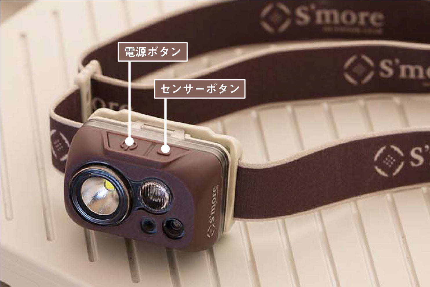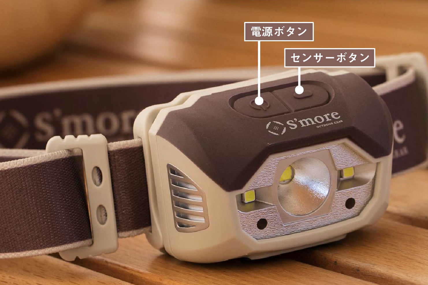 一部分に集中してライトを当てたい時や全体的に照らしたい時など0°~60°まで状況によって6種類のライトモードに切り替えることができます。センサーモードについて センターボタンを2回押すとセンサーモードがオンになります ※3秒以上経過したらセンサーボタンを押してスイッチをオフにします。
